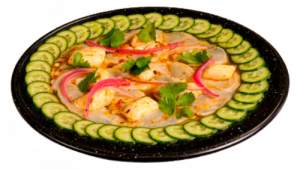 bien servidos sobre tostada cevichera. pepino,