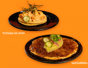 aguacate, cebolla encurtida, rematada con salsa